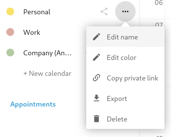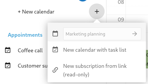 + New Calendarin the left sidebar.Type in a name for your new calendar, e.g. “Work”, “Home” or “Marketing planning”.